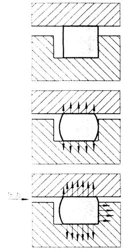 與O型密封圈一樣,矩形密封圈是可以用于雙向密封的固定密封件的。由于安裝時所施加的予接觸壓力,使矩形密封圈的貼合面徑向和軸向產生初始的密封性能。東晟密封認為這種接觸壓力,是因液壓系統壓力而相應加強的。這樣就產生了隨液壓系統壓力而增大的總密封壓力,其接觸壓力分布如圖1所示的一樣。