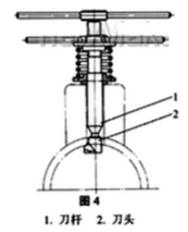 圖3所示為液壓缸缸筒,缸筒上的螺紋孔常安排在工序之后加工,這樣就不可避免地要在螺紋孔出口與缸筒內壁的交界處產生毛刺。為毛刺,設計制做專用對其進行加工,達到光滑過渡的目的。專用的結構見圖4。使用時,先將刀桿從螺紋孔中插人,然后從側面將刀頭安裝在刀桿上,旋轉刀桿即可將毛刺除掉并加工出光滑完整的表面。
