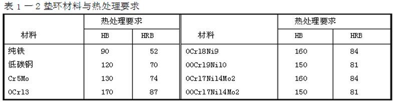 這兩種墊,與其相對應件___一窄圓弧球面接觸,靠將其接觸面壓光成為一窄圓弧球面光環進行密封,適用于公稱壓力32MPa,耐溫近5000C的場合。在化工生產中,設備、壓力容器與管道連接部位使用非常廣泛,其制造材料與熱處理要求見表1—1。