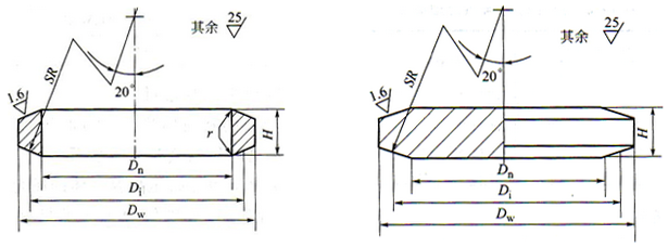 八角墊與0形密封墊的斷面形狀為八角形和0形,安裝在溝槽中使用??繅|圓與溝槽的斜面接觸并壓緊而形成一個環形窄帶面并壓光而進行密封,主要運用在高壓高溫氣體的場合。它們的適用范圍與透鏡墊相類似。制作八角墊和0形密封墊的材料與熱處理要求見表1—2。