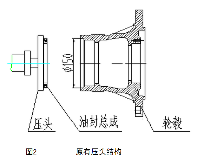 從理論講,要使油封垂直地壓入輪轂油封孔φ150中,壓頭水平移動中心與油封孔中心就應嚴格保證在同一水平線上,即有同軸度要求,而在實際裝配中很難保證,因為汽缸活塞桿水平移動不會水平,并且工作一段時間后,活塞磨損造成的偏差會越來越大,從而油封在孔中傾斜會逐漸加大。