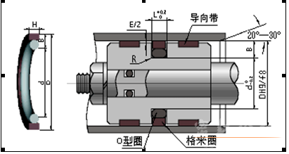 孔用組合密封圈由O型圈和耐磨環組成(見圖1)。