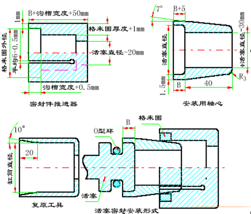 下述安裝程序適用于格萊圈密封件,對整體式密封裝置,建議使用圖示安裝工具