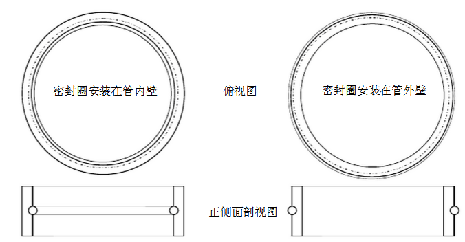 我們以常見的O型圈密封件為示例,密封圈安裝在溝槽內,有內置和外置管壁使用,如圖1所示: