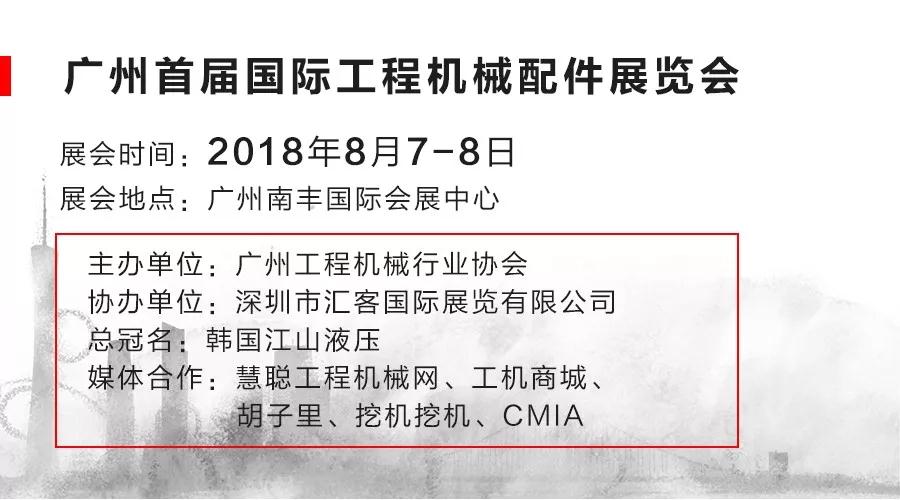 由廣州工程機械行業協會舉辦的廣州首|屆國|際工程機械配件展即將于2018年87-8日在廣州南豐國|際會展中心隆重登場。同期協會十周年千人慶典、展會現場訂貨會、高峰論壇將輪番登場。